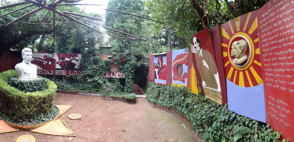 „35 km östlich von Tiflis im Dorf Akhalsopeli hat sein Bewohner Temur Kunelauri ein privates Stalin-Museum. In seinem eigenen Haus sowie in seinem grünen und schönen Garten hat Kunelauri viele Porträts, mindestens 12 Büsten und Denkmäler von Stalin aufgestellt. Er hat auch ein „Mausoleum“ mit einer Stalin-Statue im Grab geschaffen, die mit roten Nelken und einem Kranz auf dem Kopf übersät ist. Um den Ort noch mehr zu genießen, schlage ich vor, dass Sie versuchen, so zu tun, als würden Sie Stalin bewundern und Temur wie in alten Zeiten als sowjetischen Genossen respektvoll begegnen, vermeiden Sie es, über Deportationen und negative Fakten über diesen Tyrannen zu sprechen, und versuchen Sie stattdessen, die sowjetische Zeitung Prawda zu zitieren einige propagandistische Mitarbeiter: wie Feinde des Proletariats“